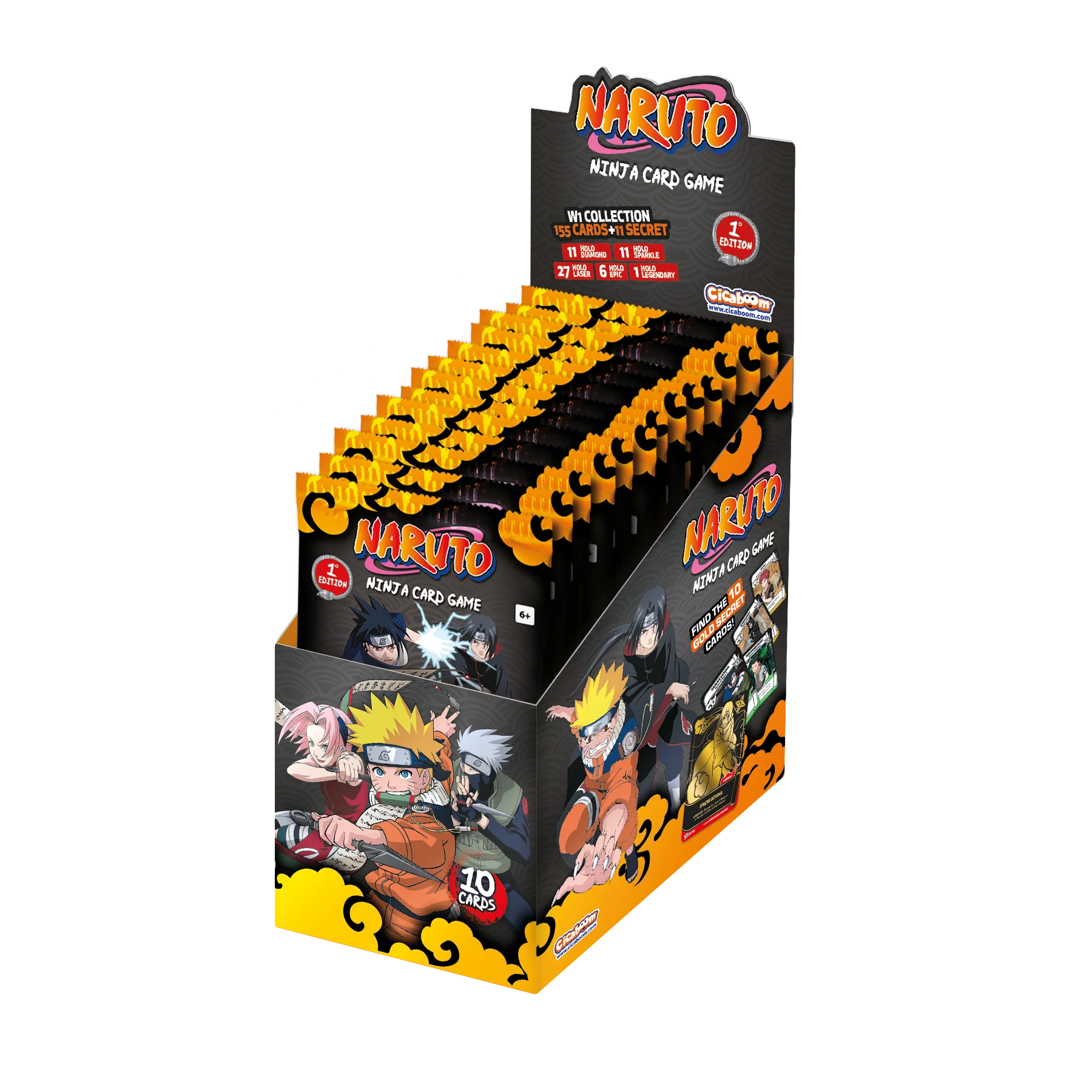 Ogni bustina contiene 10 carte per espandere la tua collezione o rafforzare la tua strategia ninja, con la possibilità di trovare carte Rare, Segrete e persino la leggendaria Gold K, realizzata in vero oro 22 carati.